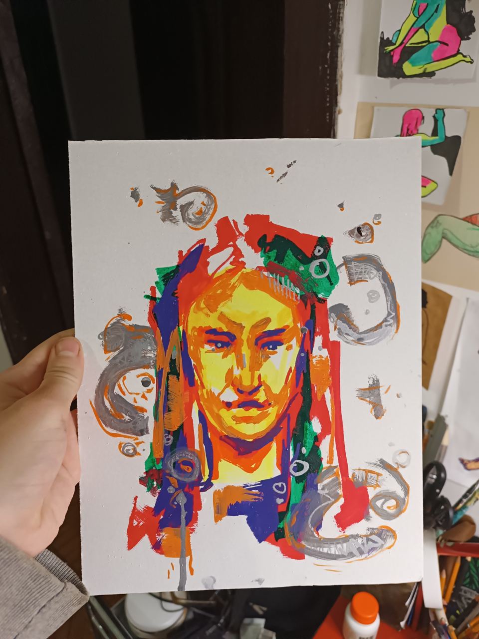 During the resideny, Valeriia worked on a series of works about her love for drawing colourful portraits, abstract shapes, and flowers.