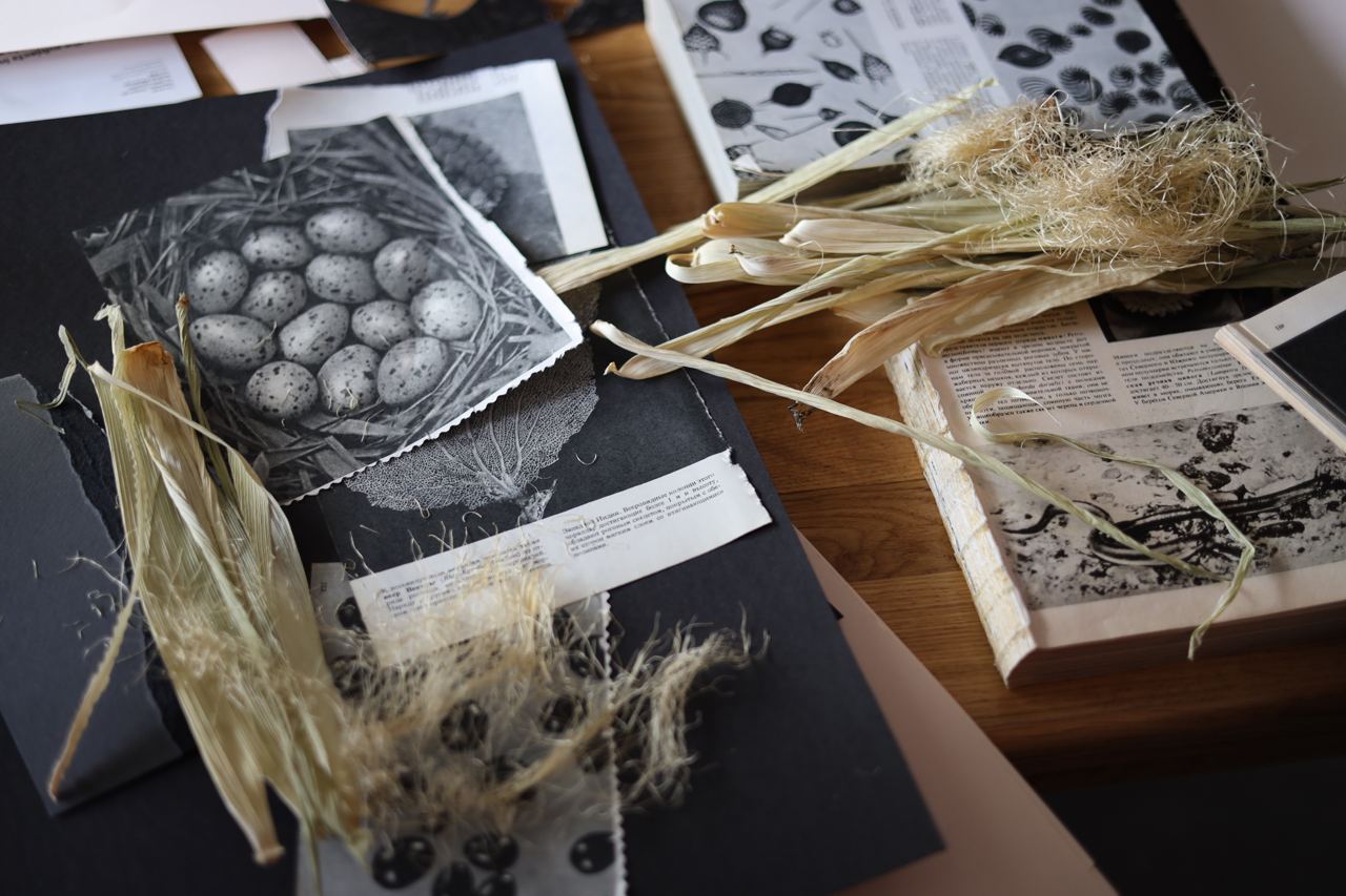 Master class on analog collage for 15 adults and children. It was an event where the participants listened to an introductory lecture on analog collage and created their unique works from clippings from old books and magazines with the addition of dried leaves.