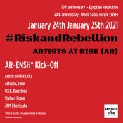 January 24th and 25th, 2021 #RiskandRebellion livestream: YouTube: http://bit.ly/RandRliveYoutube PROGRAMME ANNOUNCED! PARTICIPANTS ANNOUNCED! Full participants list: click here. A mondial symposium and kick-off of Artists at Risk (AR) – A European Network of Safe Havens (AR-ENSH) Art. Dissident Political Movements. Activism. … Continue reading